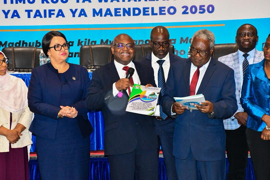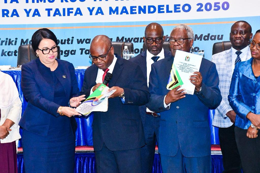 Waziri wa Nchi, Ofisi ya Rais, Mipango na Uwekezaji, Prof. Kitila Mkumbo amekabidhi nyenzo za utendajikazi kwa Timu Kuu ya Wataalamu ya Dira ya Taifa ya Maendeleo 2050 ikiwa ni nyaraka muhimu zitakazotumika katika sehemu ya uaandaaji wa Dira 2050.
