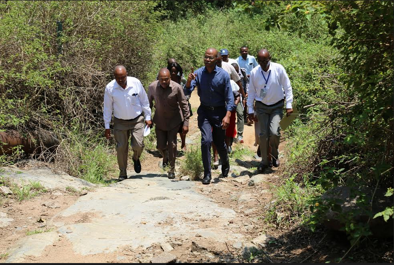 Waziri wa Nchi ofisi ya Makamu wa Rais Muungano na Mazingira Mhe. January Makamba akiwa na viongozi wa Wilaya na Manispaa akipanda Mlima Mukendo ili kujionea namna ya kuuhifadhi ikiwa ni miongoni mwa maeneo yaliyopendekezwa na Baraza la Madiwani kuhifadhiwa kwa mujibu wa Sheria ya Mazingira.
