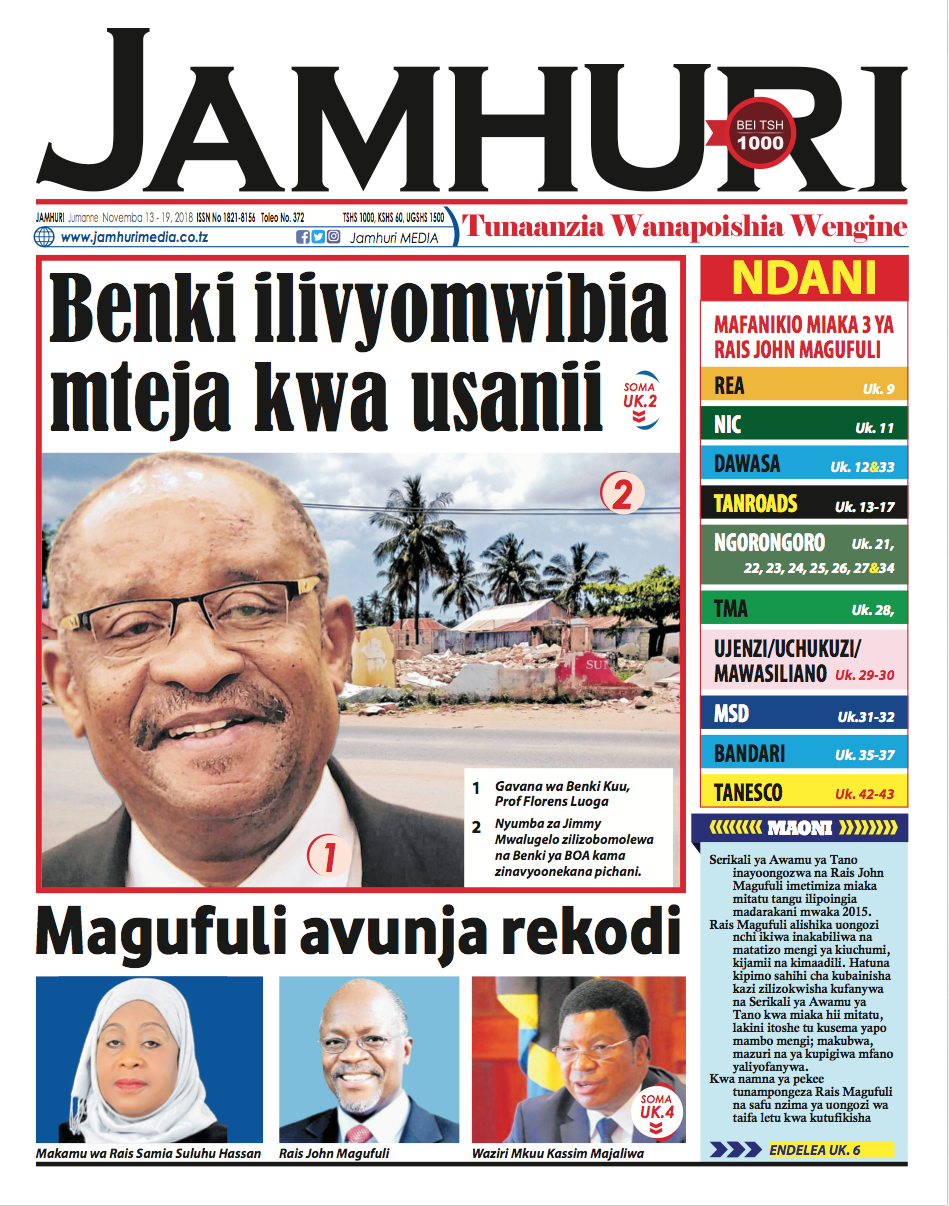 Mwishoni mwa wiki iliyopita, Brela kupitia Kampuni ya B & E AKO Law, imeliandikia barua Gazeti la JAMHURI ikilitaka liache kuchapisha habari zinazohusiana na BOA na kwamba gazeti lijitathmini na kupeleka mapendekezo linataka kuilipa BOA shilingi ngapi kama fidia kwa hasara na usumbufu walioupata kutoka kwa wateja wao kutokana na kuchapishwa kwa habari za BOA kuibia wateja wake.