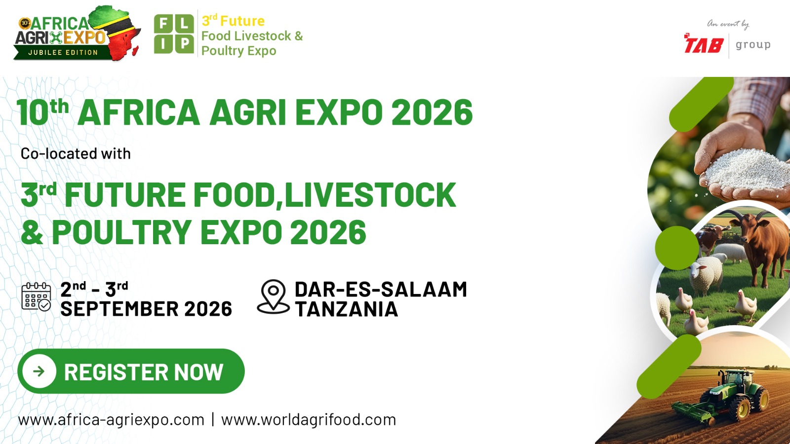 Usikose kushiriki 10th AFRICA AGRI EXPO 2026, yatakayofanyika sambamba na 3rd Future Food, Livestock & Poultry Expo 2026. Hili ni jukwaa muhimu kwa wakulima, wafugaji, wawekezaji, wafanyabiashara na wadau wa sekta ya chakula kutoka Afrika na duniani kote.