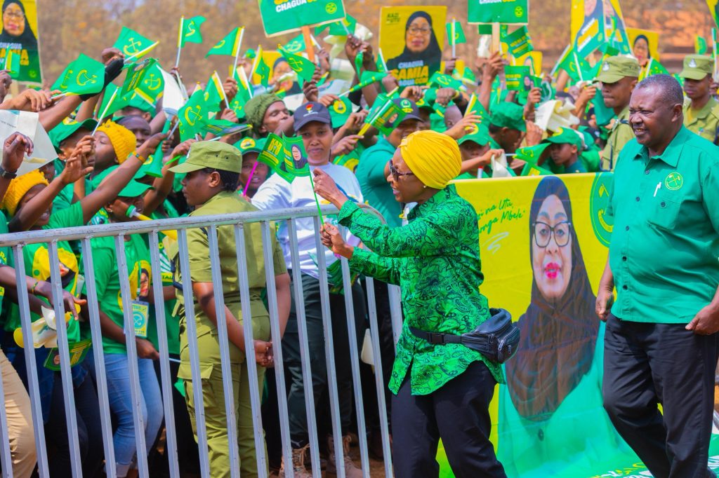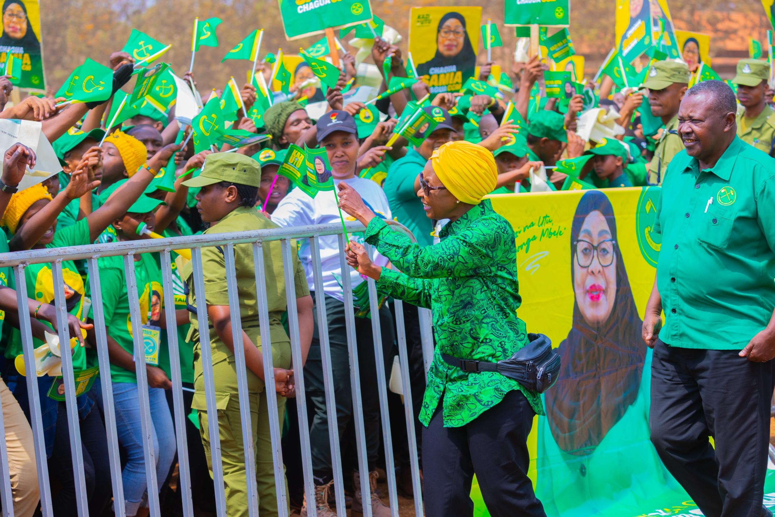 Pamoja na mambo mengine, Dkt. Migiro ametoa salamu nzuri za ujio wa Dkt. Samia katika viwanja hivyo mda mchache ujao ambaye anatarajiwa kunadi Ilani ya CCM (2025/30) Sera na Ahadi zake ikiwa ni pamoja na kuomba kura.