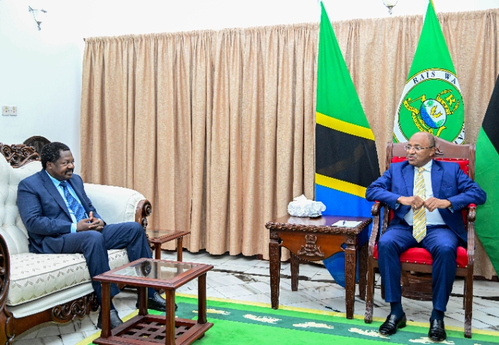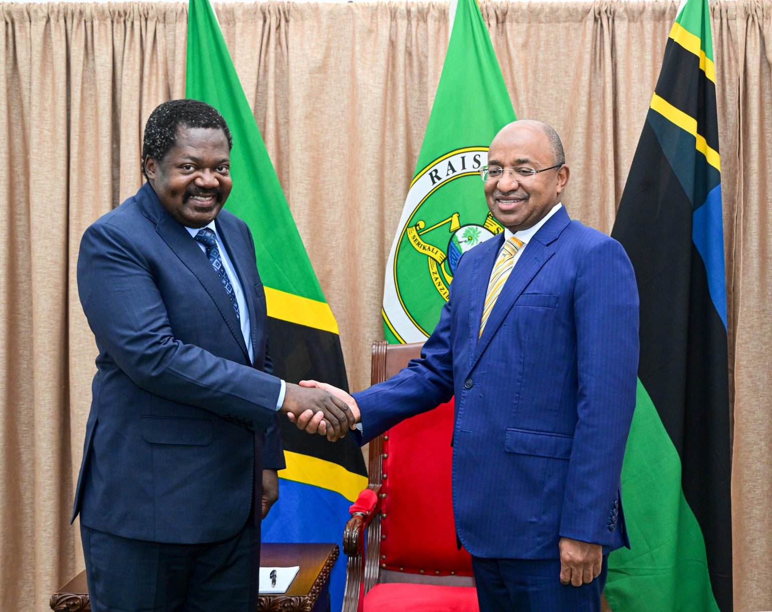 Makamu wa Rais wa Jamhuri ya Muungano wa Tanzania Mhe.Balozi Dkt. Emmanuel Nchimbi akifanya mazungumzo na Rais wa Zanzibar na Mwenyekiti wa Baraza la Mapinduzi Mhe. Dkt. Hussein Ali Mwinyi, Ikulu, Zanzibar leo tarehe 22 Novemba 2025.
