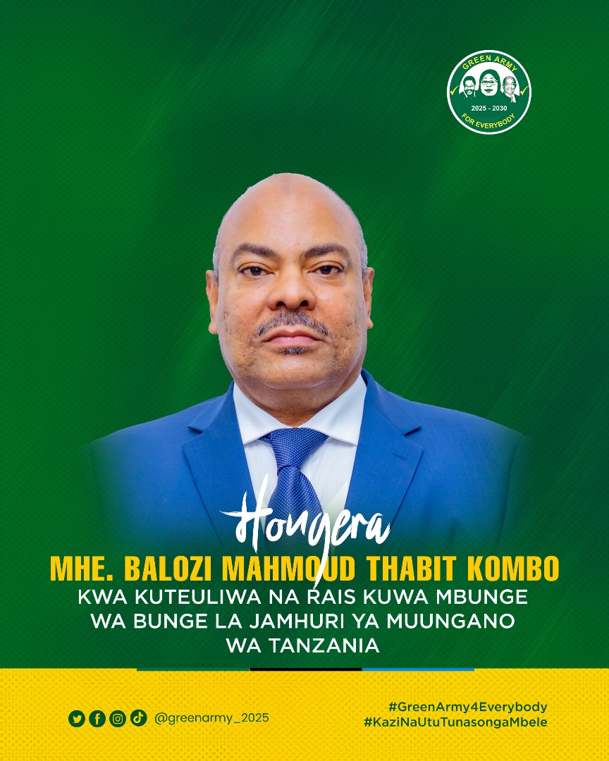 Novemba 10, 2025 Rais wa Jamhuri ya Muungano wa Tanzania, Dk. Samia Suluhu Hassan amefanya uteuzi wa wabunge sita katika nafasi 10 anazopewa kikatiba. Walioteuliwa ni Dk. Rhimo Nyansaho, Balozi Dk. Bashiru Ally Kakurwa, Dk. Dorothy O. Gwajima, Balozi Mahmoud Thabiti Kombo, Adullah A. Mwinyi na Balozi Khamis Mussa Omar.