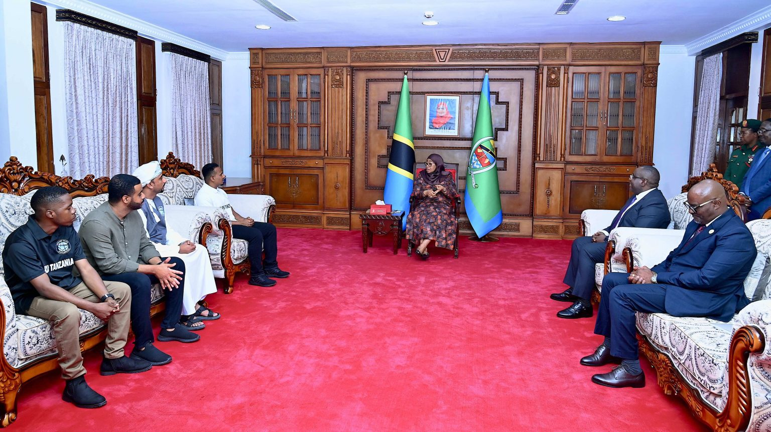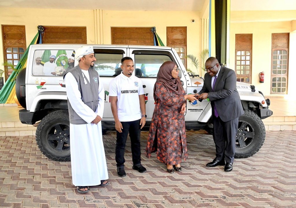 Rais wa Jamhuri ya Muungano wa Tanzania Mhe. Samia Suluhu Hassan akizungumza na Ujumbe wa Vijana wa Kitanzania wanaoishi Nchini Oman ulioongozwa na Kiongozi wa Ujumbe huo Khalid Al Barwani ulioshiriki katika ziara ya nchi 9 Duniani katika kuunga mkono Juhudi za Mhe. Rais Dkt. Samia Suluhu Hassan Kutangaza Utalii Duniani (Royal Tuor), walipofika Ikulu ndogo Tunguu Zanzibar tarehe 22 Januari 2026.Rais wa Jamhuri ya Muungano wa Tanzania Mhe. Dkt. Samia Suluhu Hassan akizungumza na Waziri wa Mawasiliano, Uchukuzi na Teknolojia ya Habari wa Oman Mhe. Said bin Hamoud Al Maawali Ikulu ndogo Tunguu Zanzibar tarehe 22 Januari 2026.Rais wa Jamhuri ya Muungano wa Tanzania Mhe. Dkt. Samia Suluhu Hassan akipokea Ufunguo wa Gari aina ya (Wrangler Geep) iliyotumika katika ziara ya nchi 9 Duniani katika kuunga mkono Juhudi za Mhe. Rais Dkt. Samia Suluhu Hassan Kutangaza Utalii Duniani (Royal Tuor) Ikulu ndogo Tunguu Zanzibar tarehe 22 Januari 2026. Anaekabidhi Funguo ni Kiongozi wa Ujumbe huo Khalid Al Barwani.Rais wa Jamhuri ya Muungano wa Tanzania Mhe. Dkt. Samia Suluhu Hassan akimkabidhi Funguo ya Gari aina ya (Wrangler Geep) Katibu Mkuu Wizara ya Maliasili na Utalii Dkt. Hassan Abass iliyoshiriki katika ziara ya nchi 9 Duniani kuunga mkono Juhudi za Mhe. Rais Dkt. Samia Suluhu Hassan katika Kutangaza Utalii Duniani (Royal Tuor), Ikulu ndogo Tunguu Zanzibar tarehe 22 Januari 2026.
