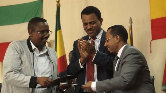 Hayo yametangazwa muda mfupi uliopita na Runinga ya taifa nchini Ethiopia ambapo mkataba huo umesainiwa katika mji mkuu wa Eritrea ambapo ndio makao makuu ya OLF.