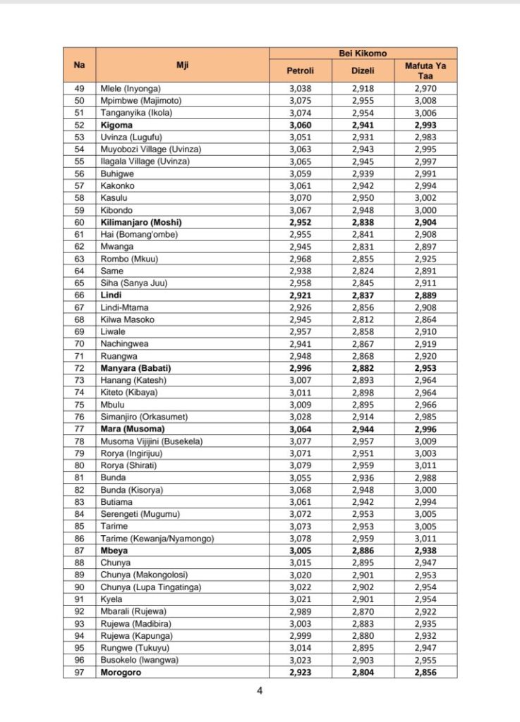 on EWURA yatangaza bei mpya zza mafuta kwa mwezi Desemba