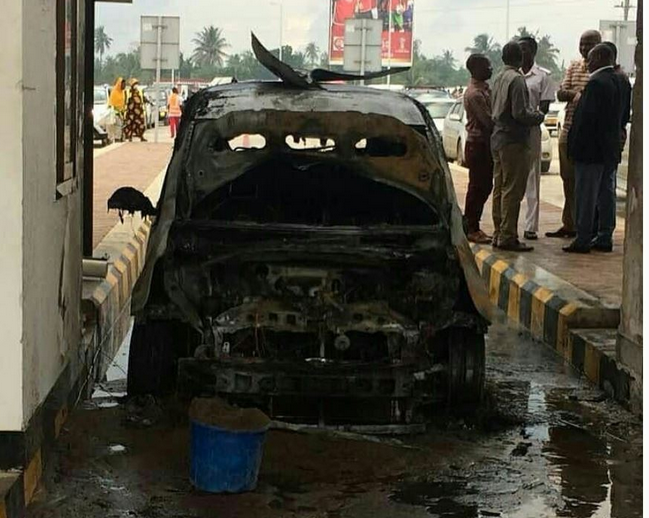 MOTO umewaka na kuteketeza gari dogo aina ya Toyota Ractics, leo Jumatatu, Julai 2, 2018 katika Daraja la Nyerere (Kigamboni) jijini Dar es Salaam huku mwenye gari akifanikiwa kutoka nje ya gari na kukimbilia sehem salama.