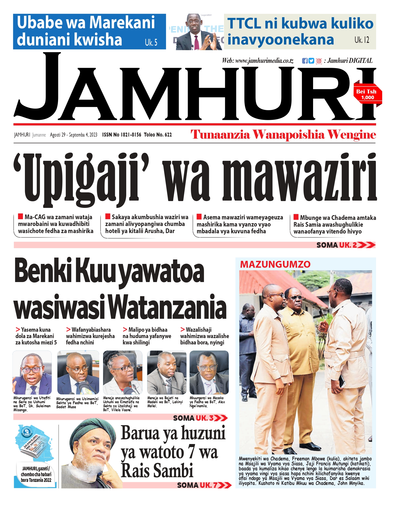 Gazeti la Jamhuri Agosti 29- Septemba 4, 2023