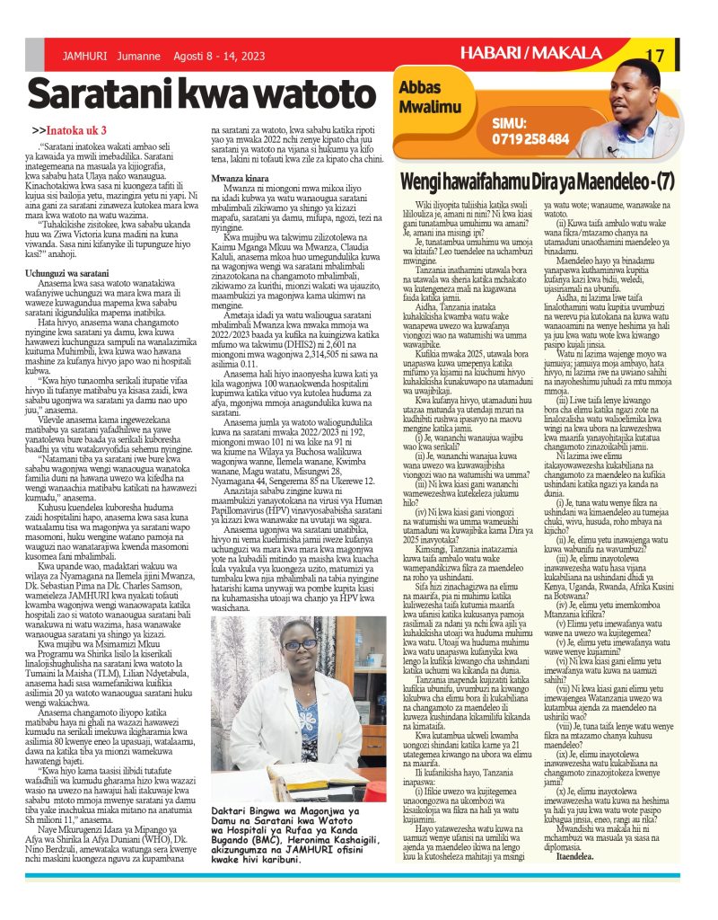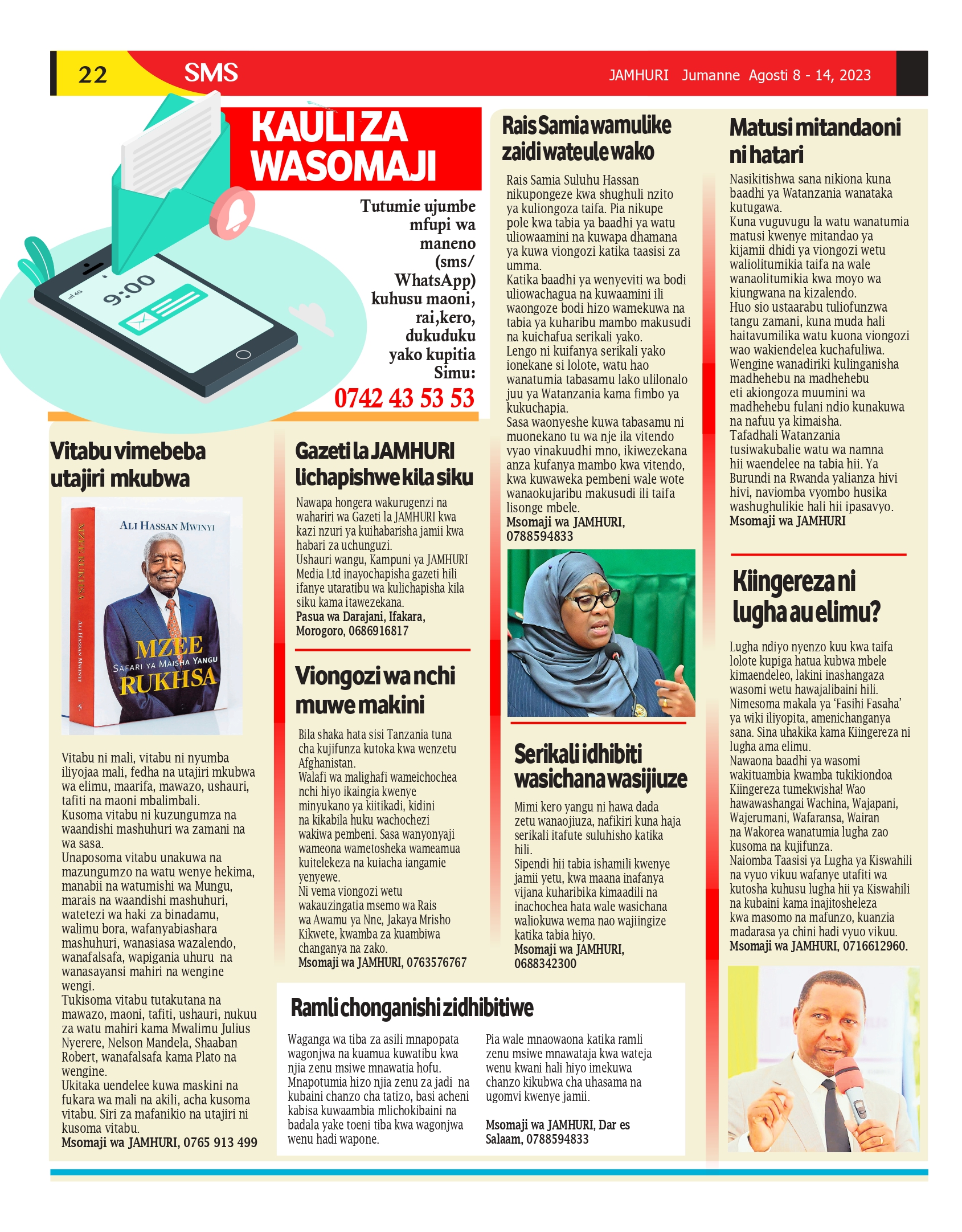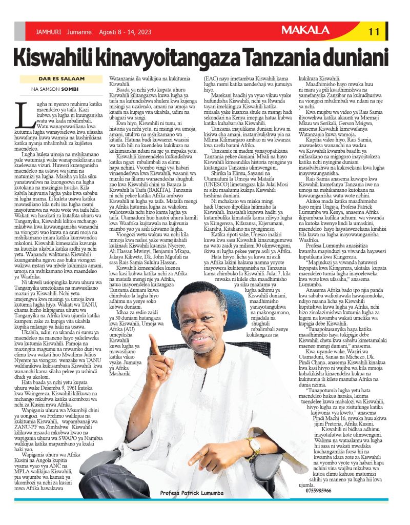 on Gazeti la Jamhuri Agosti 8-14, 2023