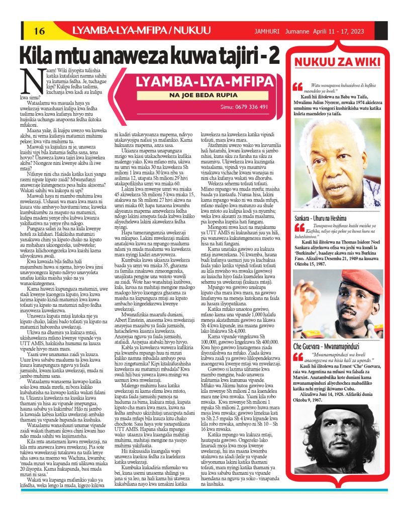 on Gazeti la Jamhuri Aprili 11-17,2023
