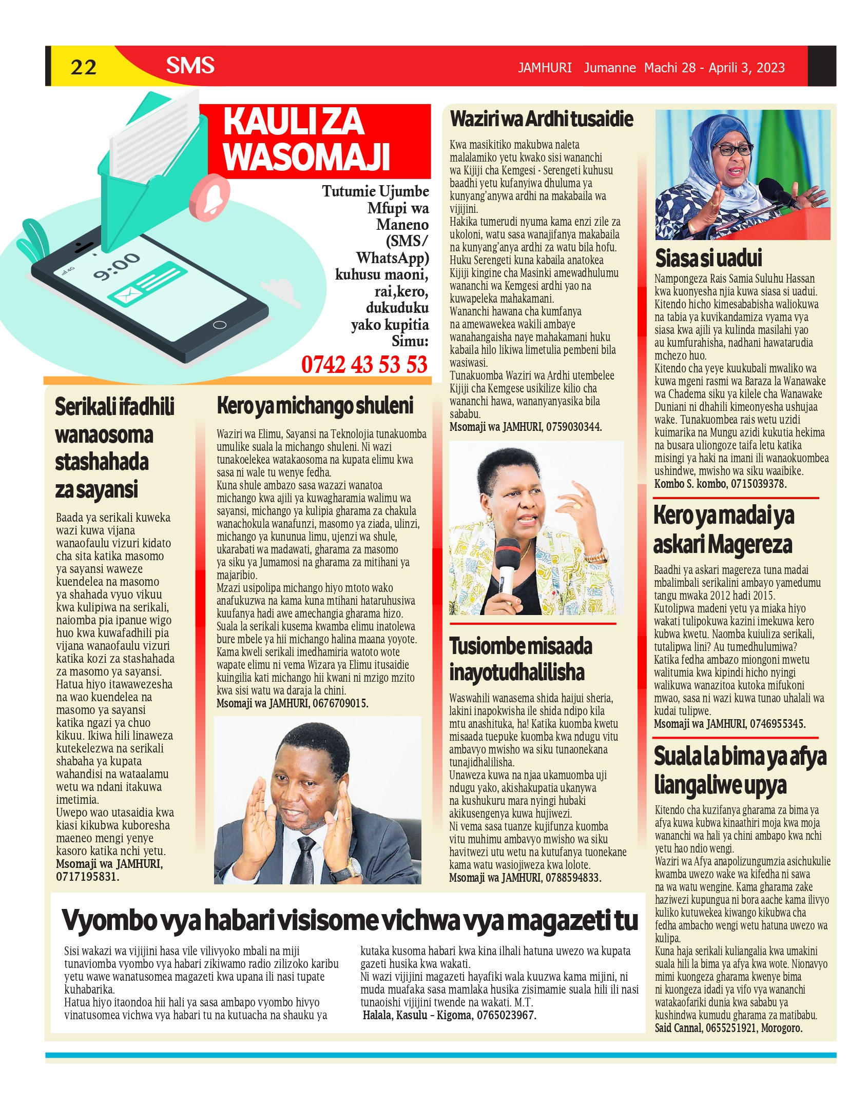Gazeti la Jamhuri Aprili 28-Aprili 3,2023