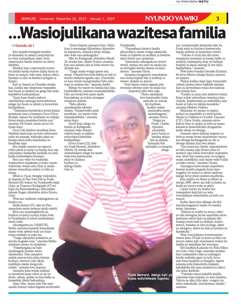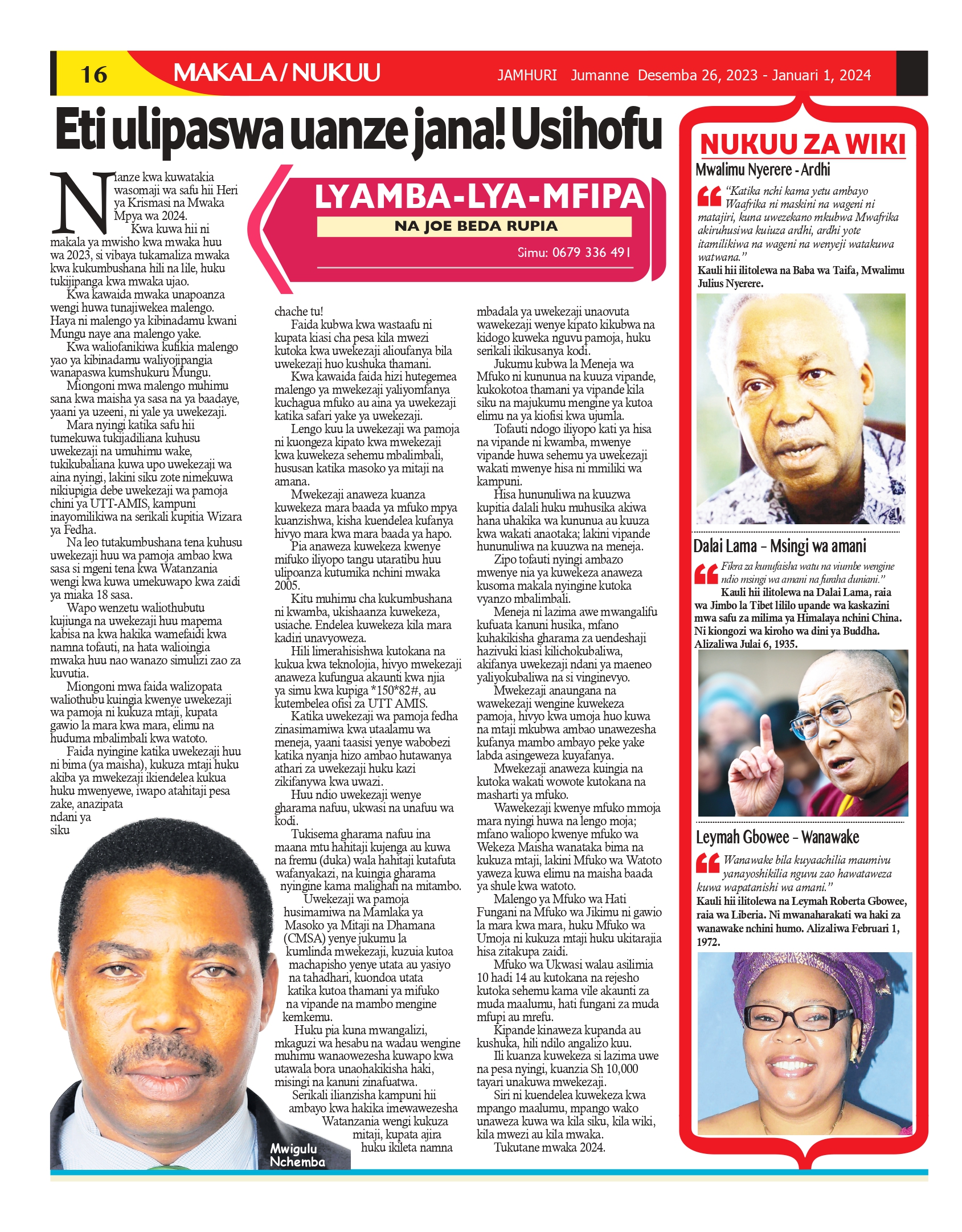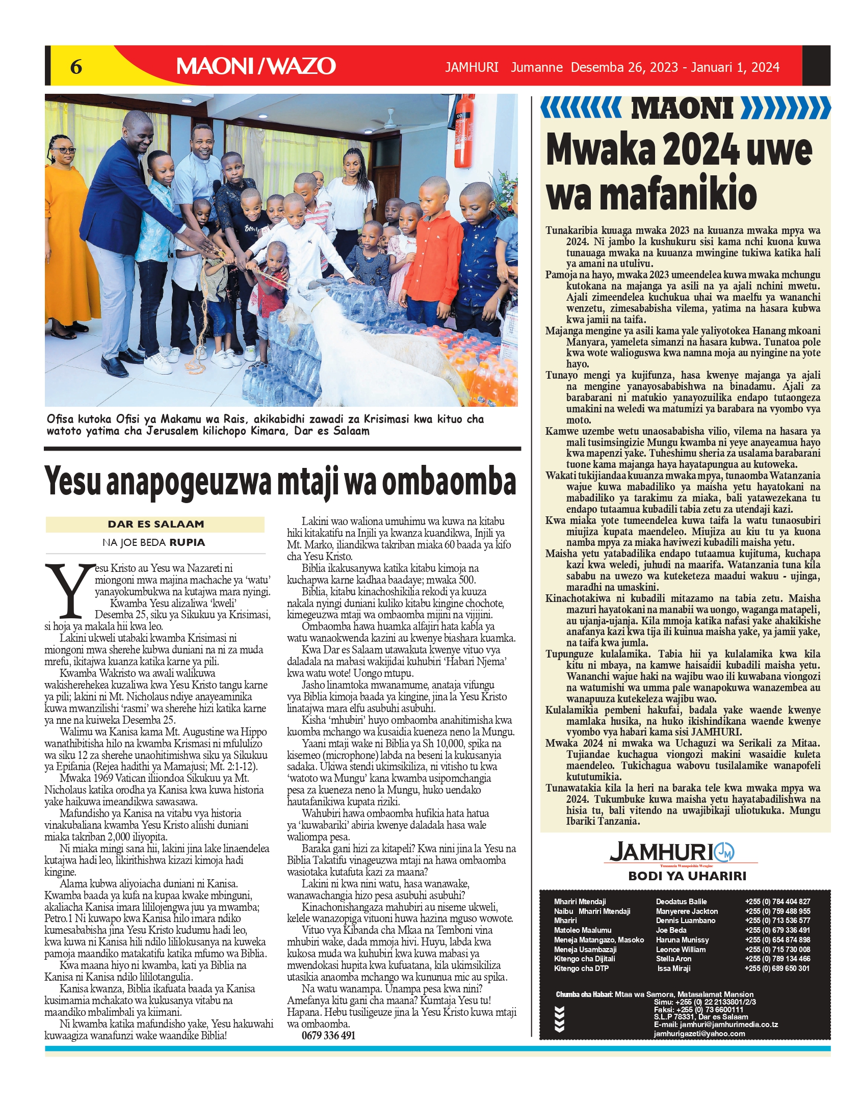 on Gazeti la Jamhuri Desemba 26, 2023 – Januari 1, 2024