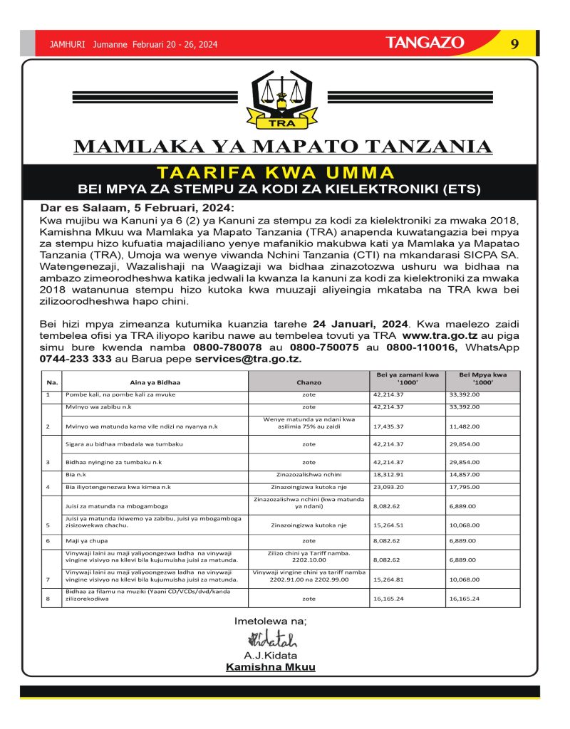 Gazeti la Jamhuri Februari 20- -26, 2024