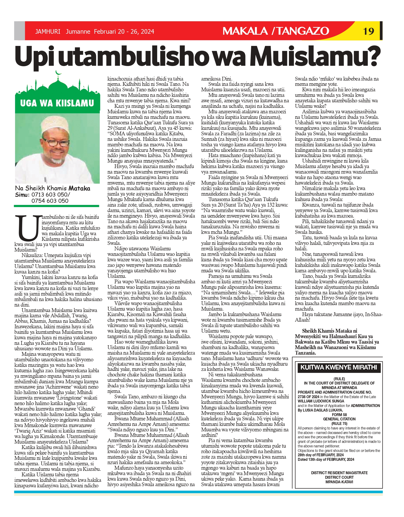 on Gazeti la Jamhuri Februari 20- -26, 2024