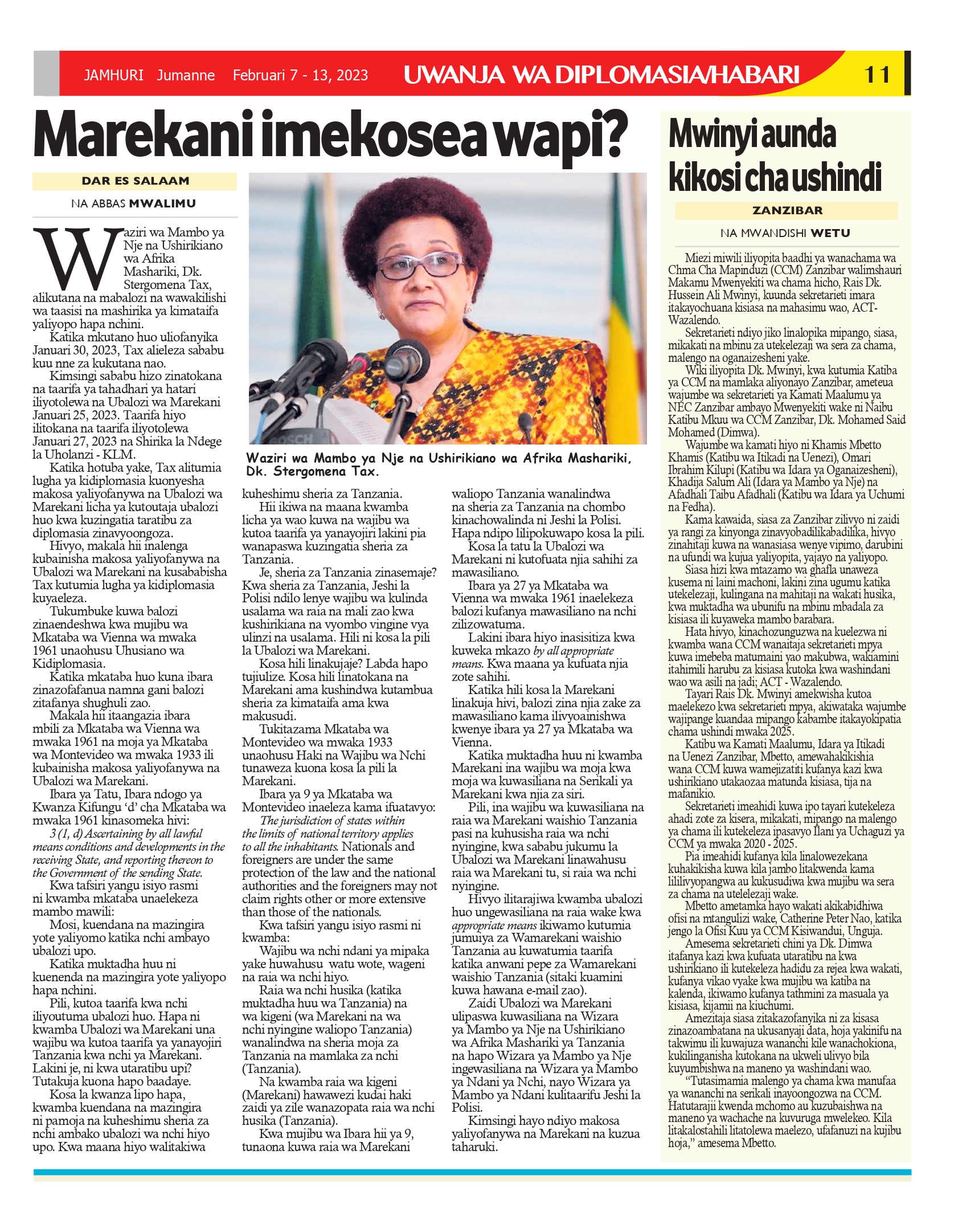 Maghembe apokea nakala za hati za utambulisho za balozi mteule Namibia nchini