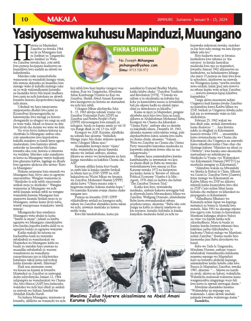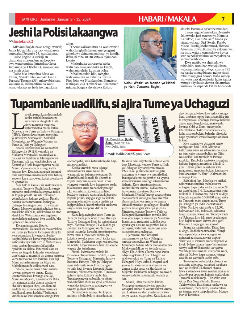 on Gazeti la Jamhuri Januari 9- 15,2024