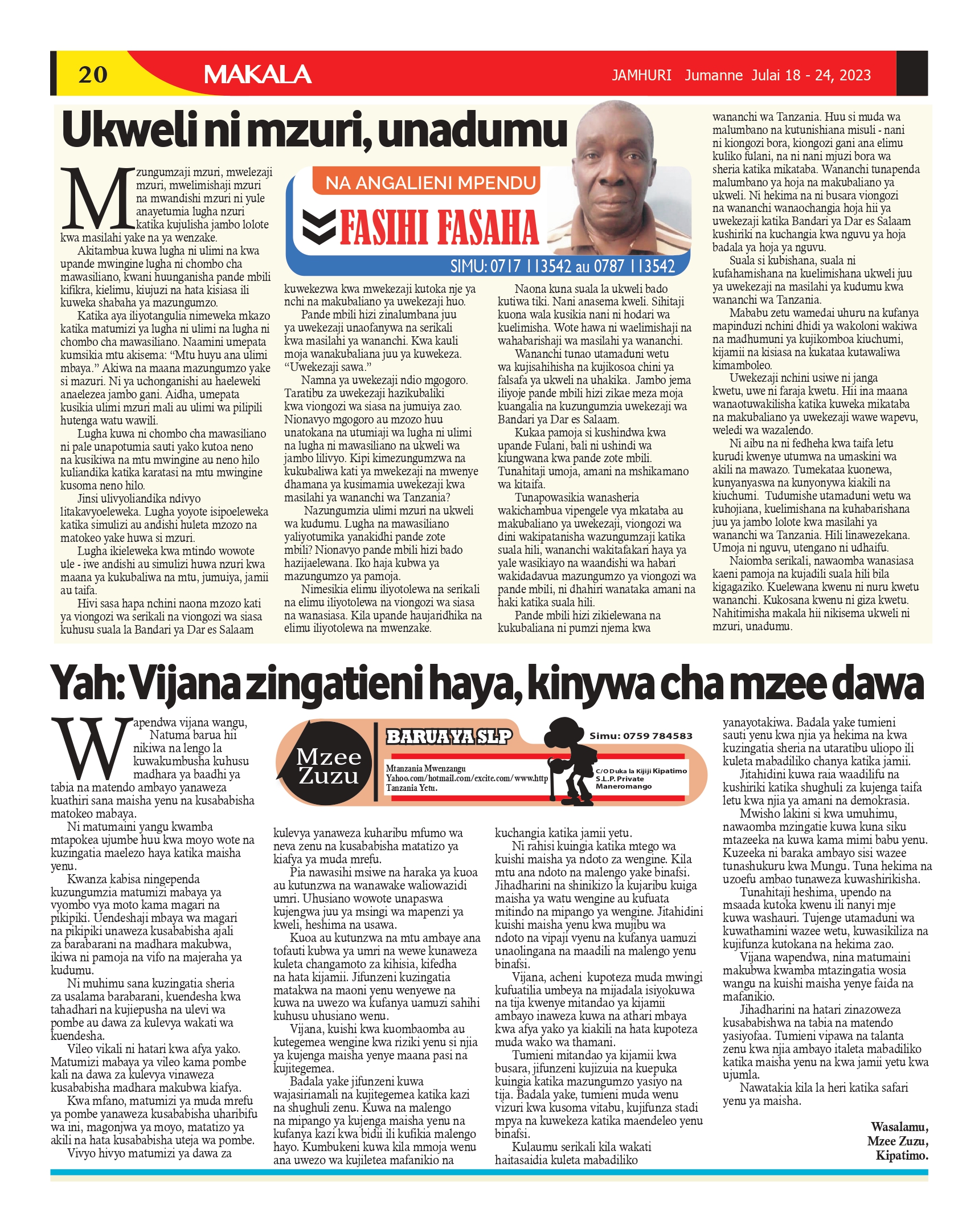 on Gazeti la Jamhuri Julai 18- 24, 2023