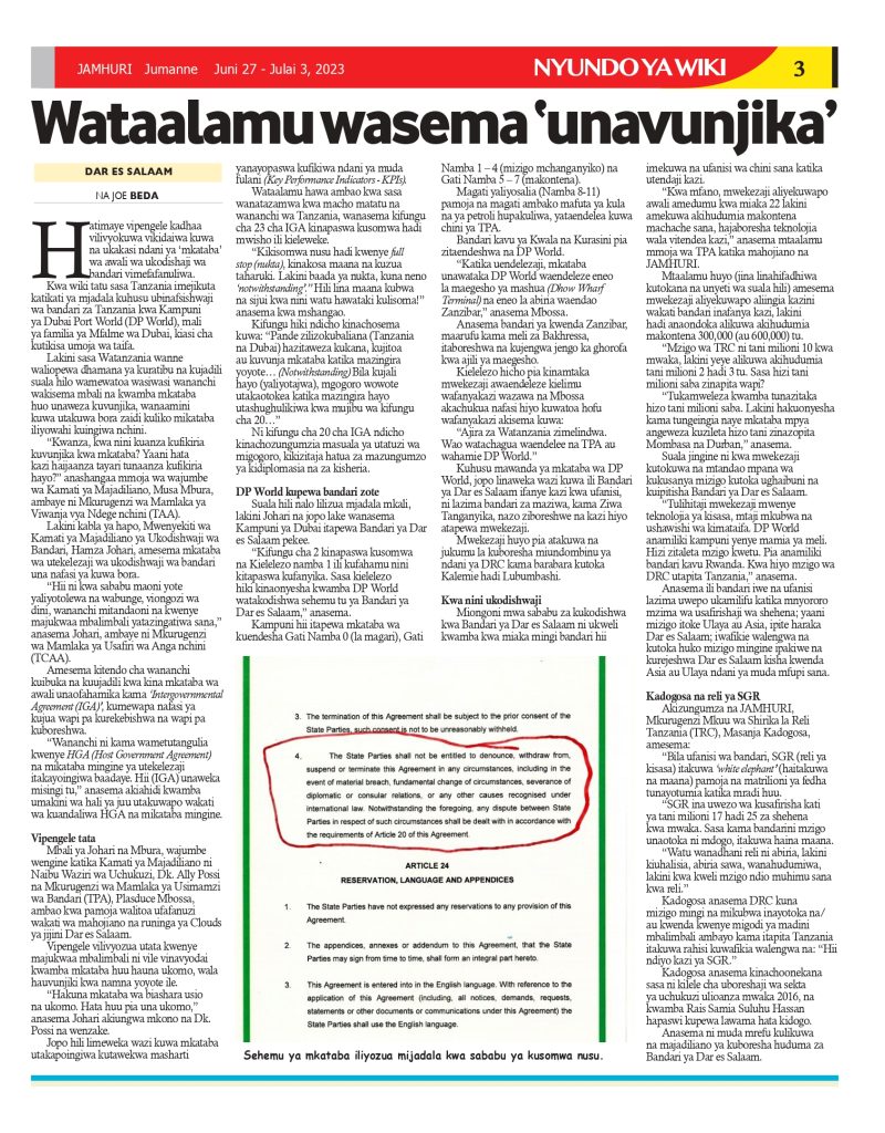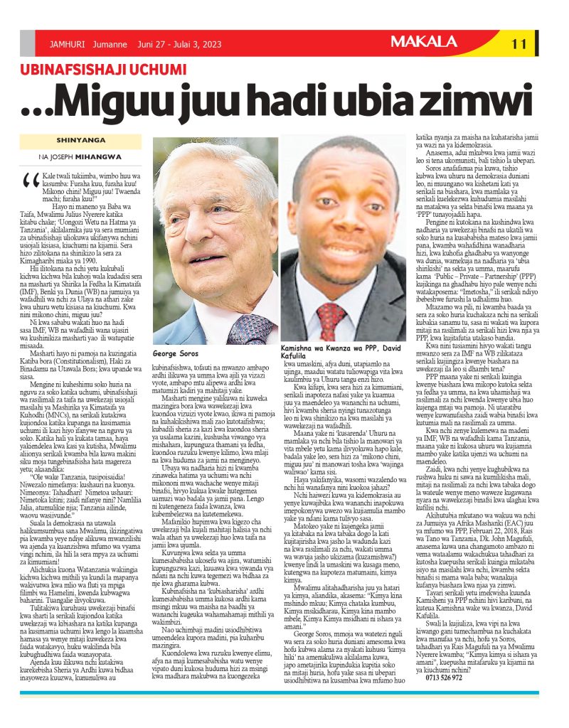 on Gazeti la Jamhuri Juni 27- Julai 3, 2023