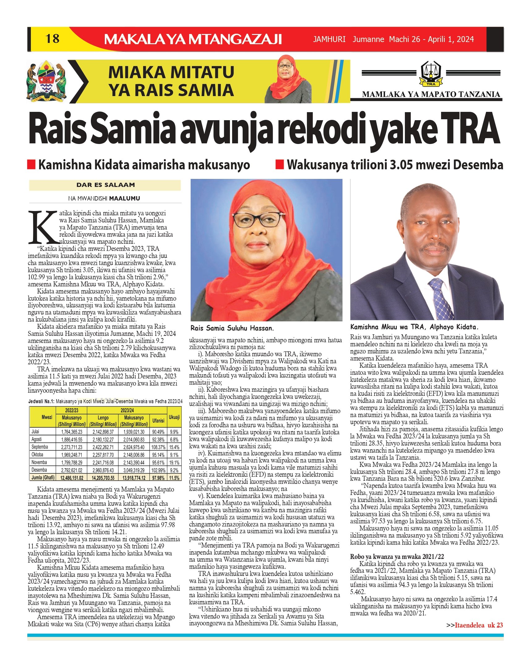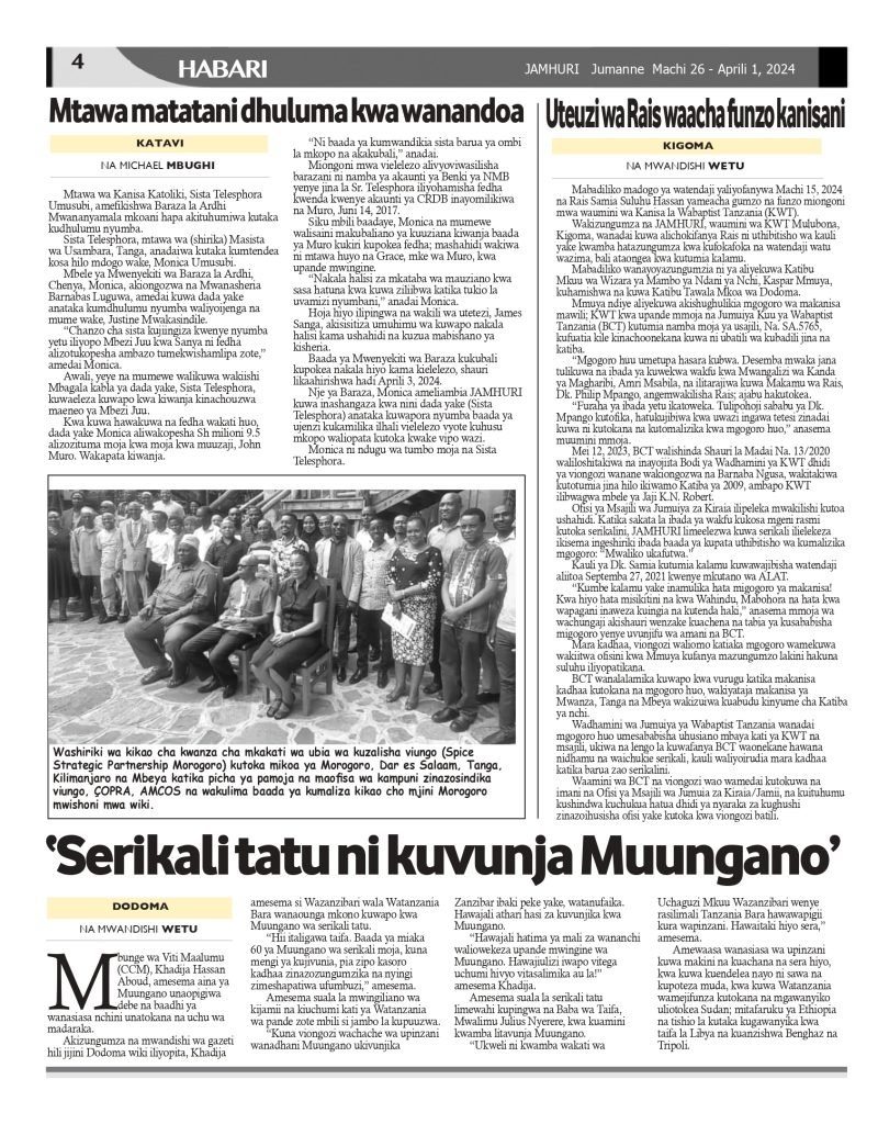 Gazeti la Jamhuri Machi 26 – Aprili 1, 2024