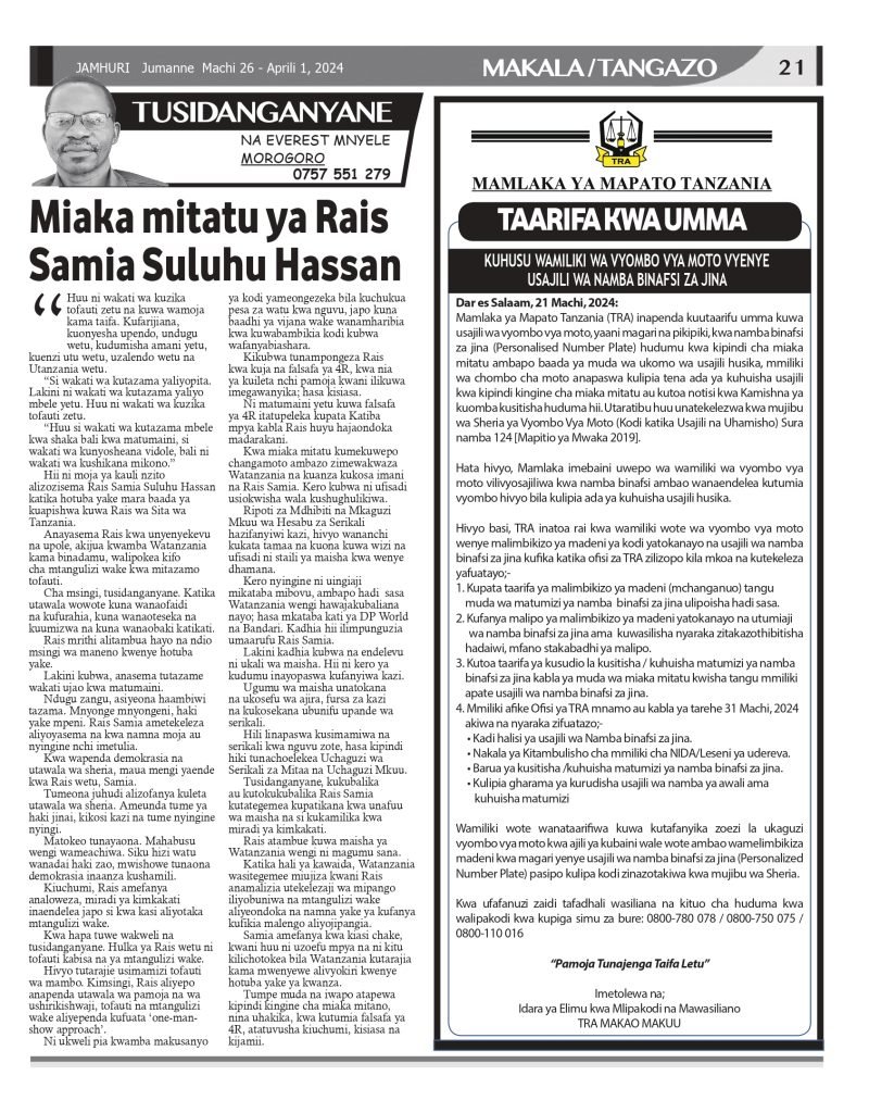 on Gazeti la Jamhuri Machi 26 – Aprili 1, 2024