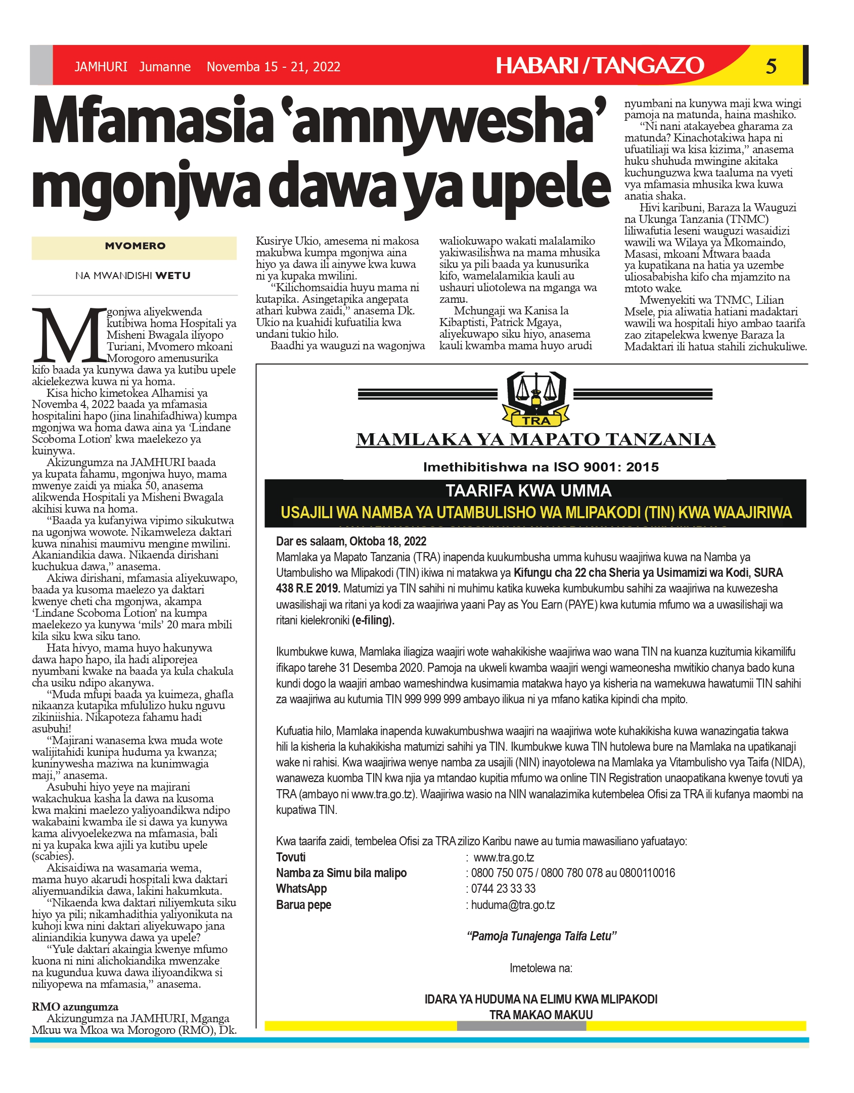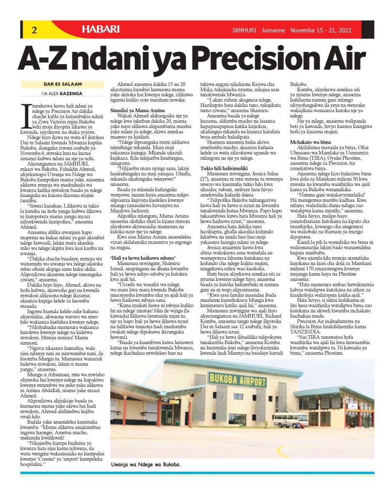 on Gazeti la Jamhuri Novemba 15-21,2022