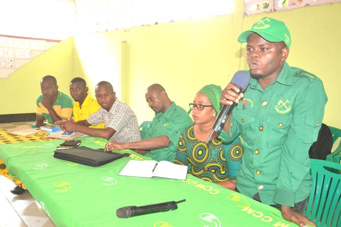Mwenyekiti wa Umoja wa Vijana wa Chama Cha Mapinduzi wa Mkoa wa Pwani (UVCCM),Charangwa Selemani Makwiro (katikati) akizungumza na wajumbe wa Baraza la UVCCM la Wilaya ya Kibaha Vijijini leo. Kushoto kwake ni Katibu Mkuu UVCCM Mkoa wa Pwani,Ramadhan Kapeto na Mwenyekiti UVCCM Wilaya Kibaha Vijijini,Jumanne Mbonde na Mwenyekiti wa Chama Cha Mapinduzi (CCM) wa Wilaya ya Kibaha Vijijini,Murtala Mkumba. Picha zote na Elisa Shunda