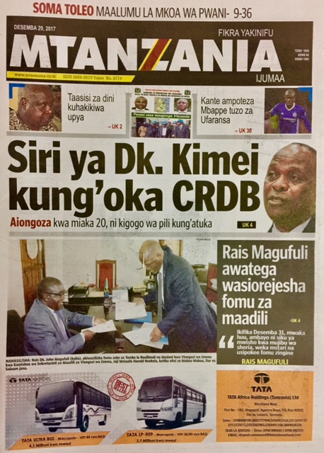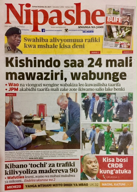 Kama upo mbali na meza za magazeti mtaani kwako basi husipitwe na kilichoandikwa kwenye magazeti ya leo Ijumaa Disemba, 29, 2017 nimekuekea hapa