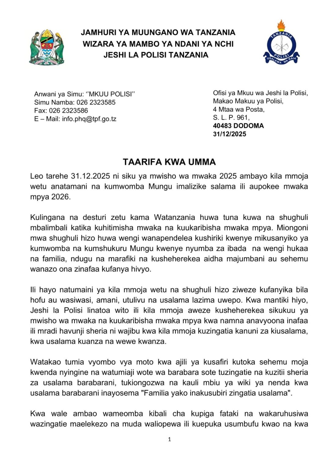 on Jeshi la Polisi laimarisha ulinzi sherehe za Mwaka Mpya