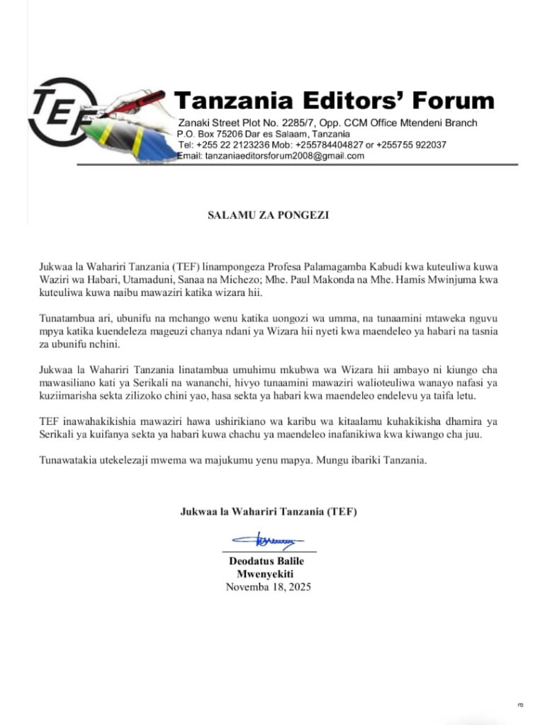 Jukwaa la Wahariri lapongeza uteuzi wa Kabudi, Makonda na Mwinjuma