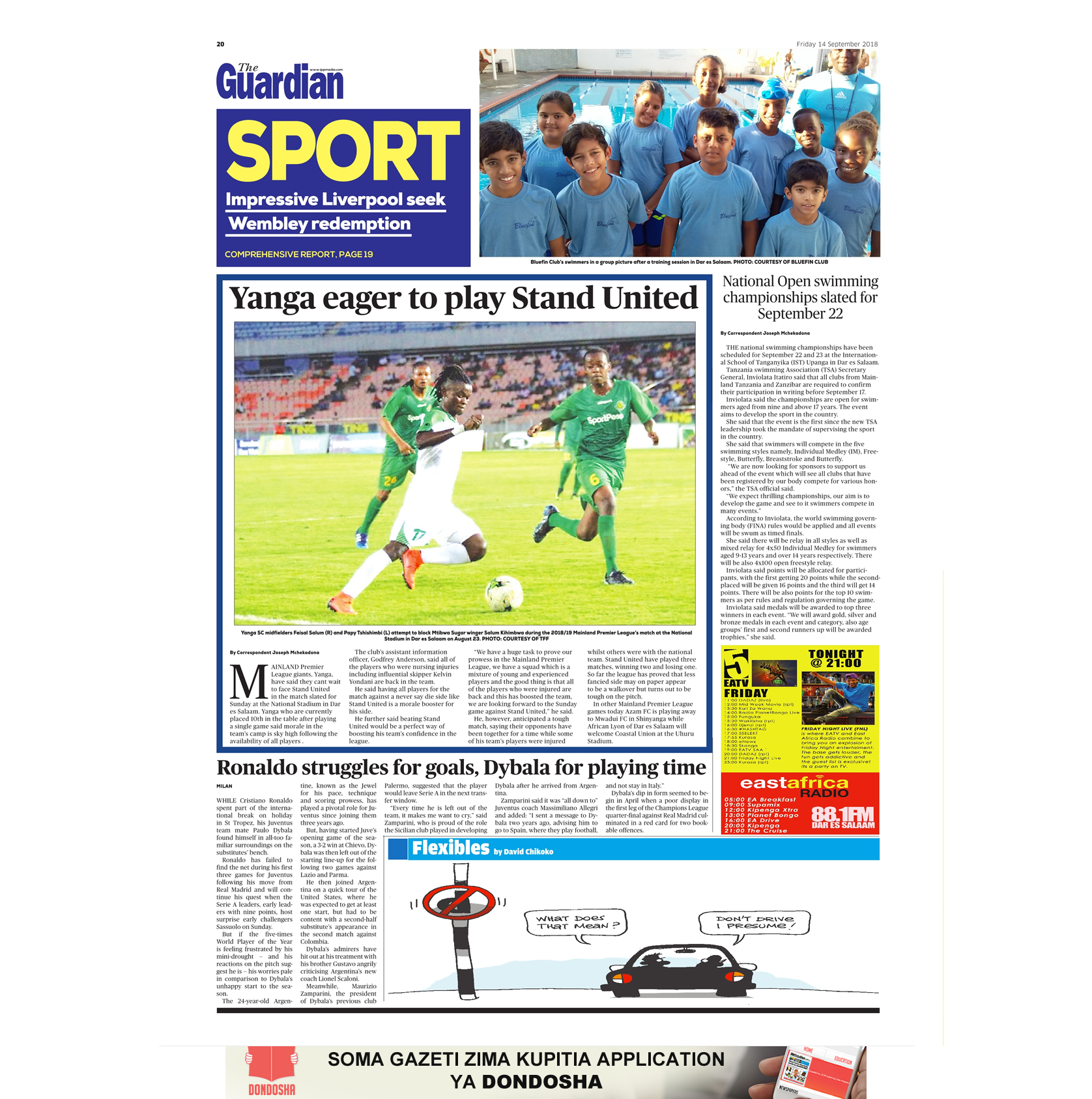 Mechi 8 Mfululizo Yanga kucheza ndani ya Jiji la Dar es Salaam