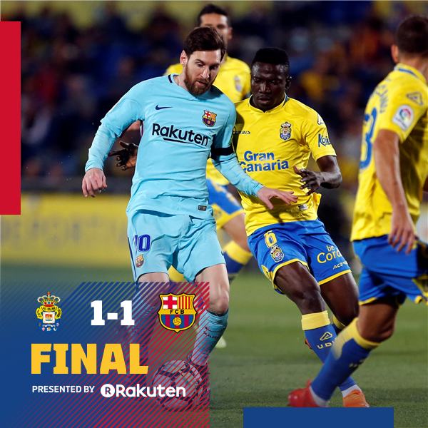 Barcelona ambao walikuwa ugenini, walianza kupata bao la kwanza kwa njia ya mpira wa faulo kupitia Lionel Messi (21′), na baadaye Las Palmas wakasawazisha kwa njia ya tuta kupitia kwa Jonathan Calleri (48′).