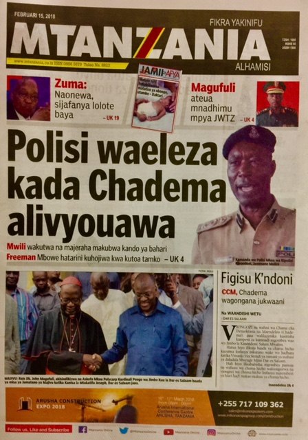 on MAGAZETI YA LEO ALHAMISI FEBRUARI 15, 2018
