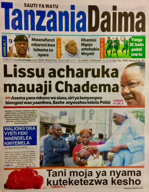 MAGAZETI YA LEO ALHAMISI FEBRUARI 15, 2018