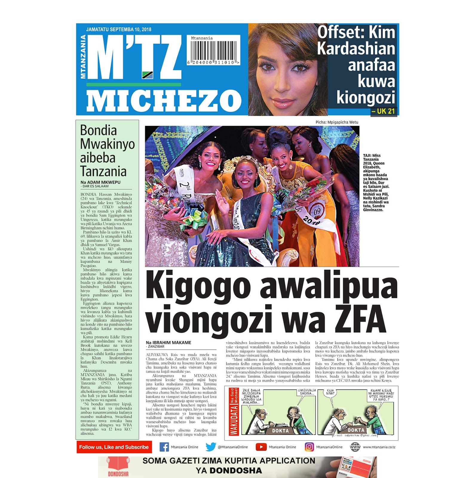 MAGAZETI YA LEO JUMATATU SEPTEMBA 10, 2018