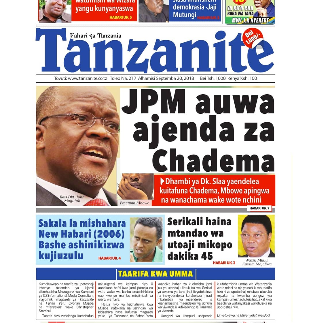 on Magazetini leo tarehe 20, September 2018