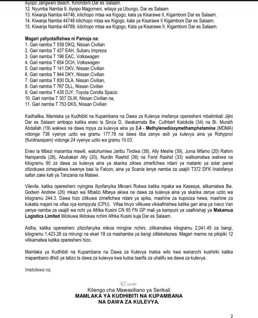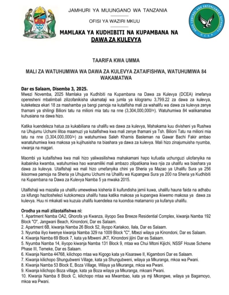 Mali za watuhumiwa dawa za kulevya 84 zenye thamani ya bil. 3.3/- zataifishwa