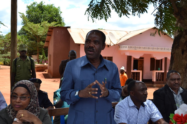 Mkuu wa Mkoa wa Tanga, Mh. Martine Shigela akizungumza na watumishi na wananchi wa Komkonga juu ya utunzaji wa vifaa hivyo na kupongeza uongozi wa Halmashuri kwa ujenzi wa maabara ndogo.