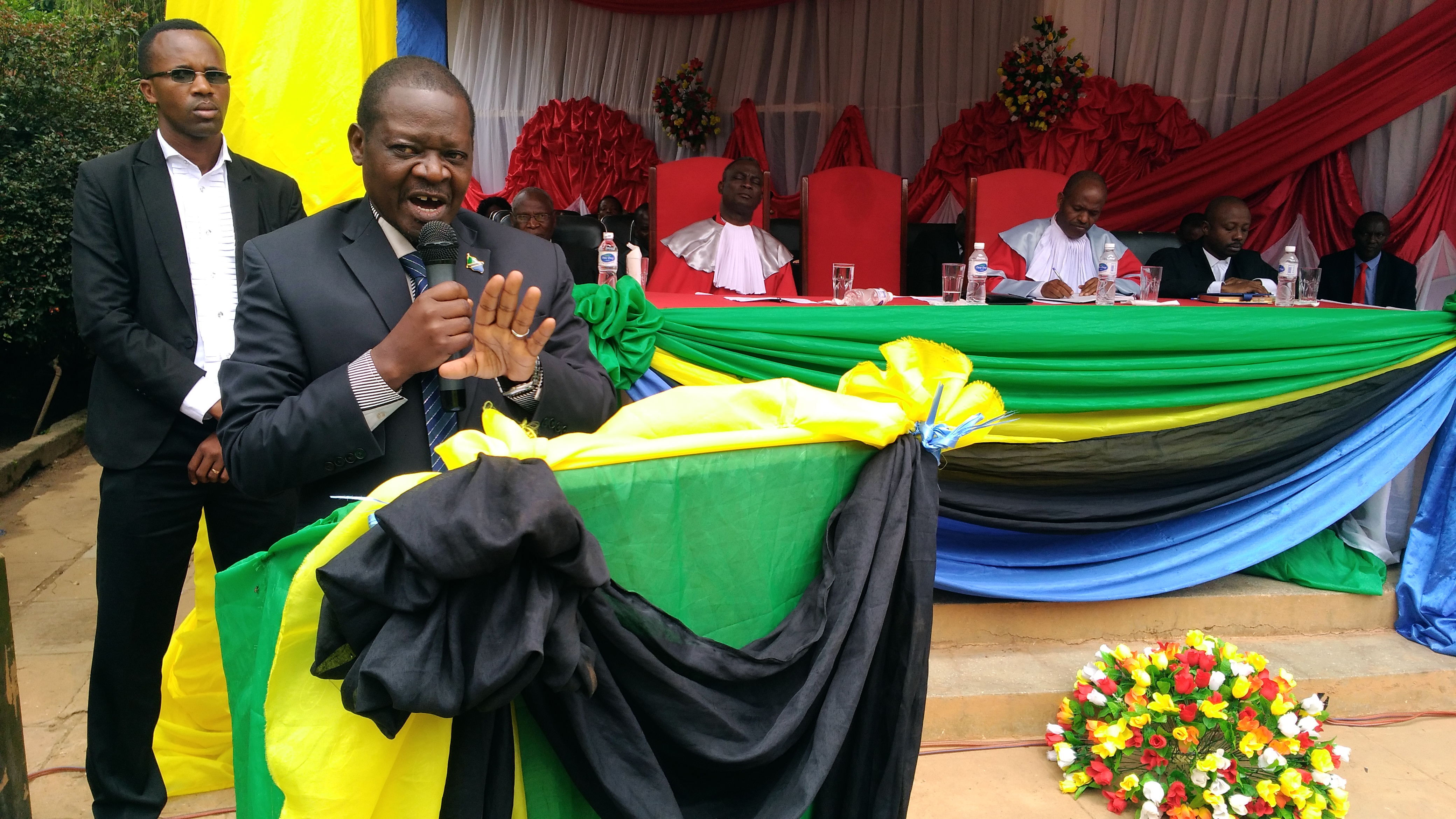 Mkuu wa Mkoa wa Rukwa Mh. Joachim Wangabo (wa tatu kutoka kulia) akiwa na Jaji Mfawidhi wa Mahakama Kuu ya Tanzania Kanda ya Sumbawanga John Mgeta (wa kwanza kushoto) na Jaji Mkuu wa Mahakama Kuu ya Tanzania Kanda ya Sumbawanga Dk. Adam Mambi (wa pili kutoka kulia) na Mwanasheria wa Serikali mkoa wa Rukwa Prosper Regerera.