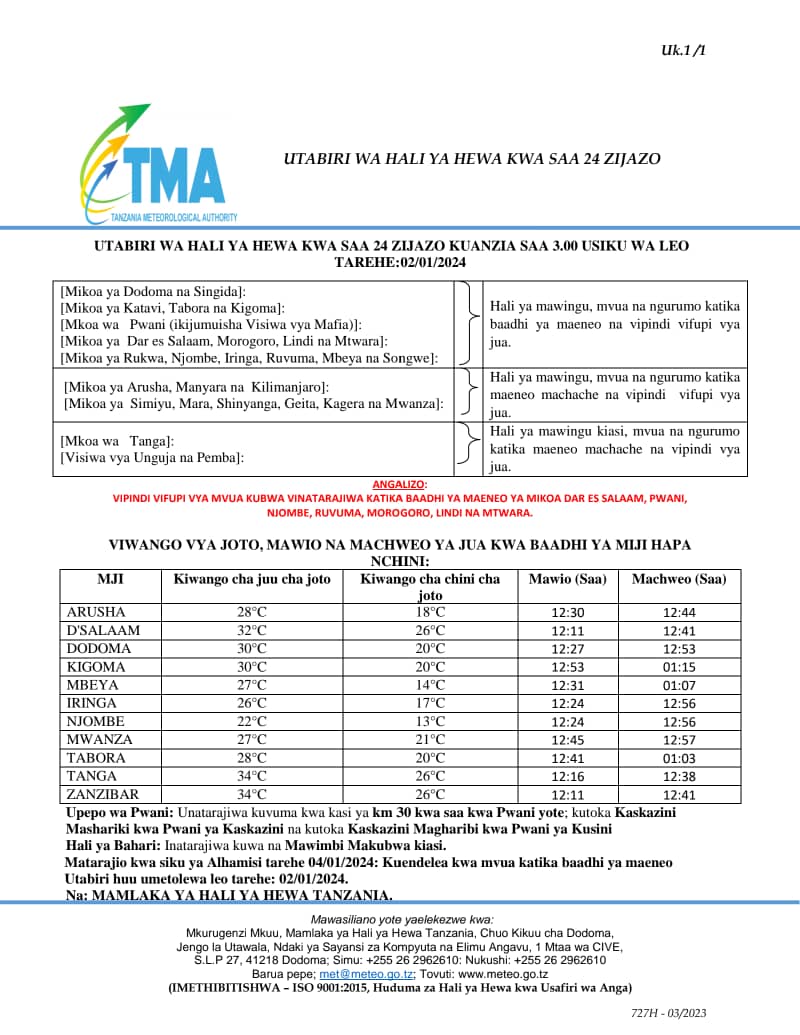 on Mikoa saba nchini kupata vipindi vya mvua mkubwa
