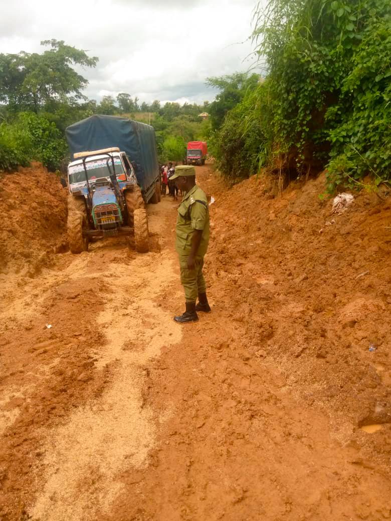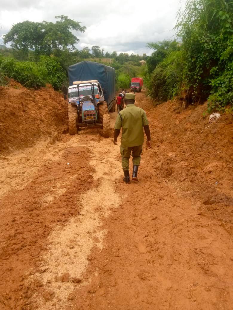 Mkaguzi Kata Iragua, Mkaguzi wa Polisi (INSP) Ramadhan Abdalla, akitoa msaada na maelekezo kwa watumiaji wa barabara katika eneo la Nyanya, Wilaya ya Ulanga, Mkoa wa Morogoro, kufuatia changamoto ya upitikaji wa barabara ili kutokuleta madhara kwa vyombo vta usafiri na watumiaji wengine wa Barabara.