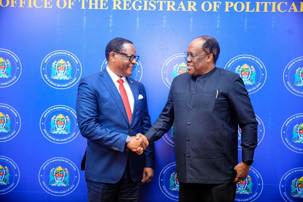 Msajili wa Vyama vya Siasa, Mhe. Jaji Mstasfu Francis Mutungi amekuta na kufanya mazungumzo na Mhe. Lazarus Chakwera, Rais wa Zamani wa Malawi na Mjumbe Maalum wa Katibu Mkuu wa Jumuiya ya Madola. Kikao hicho ni sehemu ya ziara ya Mhe. Chakwera nchini ambapo anakutana na makundi mbalimbali ya wanasiasa, taasisi na viongozi wa Serikali.