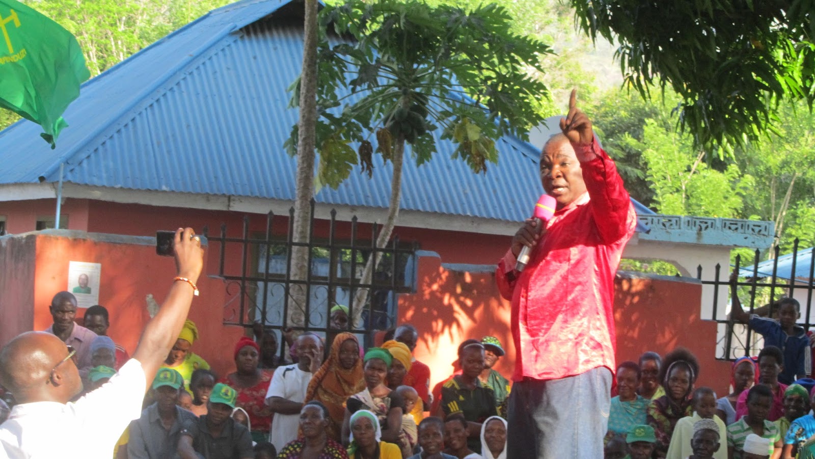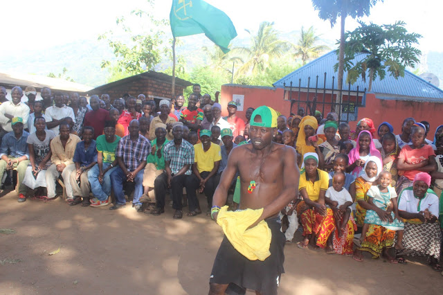 Mbunge wa Jimbo la Korogwe Vijijini na MNEC na Mjumbe wa Baraza Kuu la Wazazi Taifa Stepheni Ngonyani alimaarufu Proffesa Maji Marefu wakitunza kikundi cha maigizo wakati wa uzinduzi wa kampeni hizo