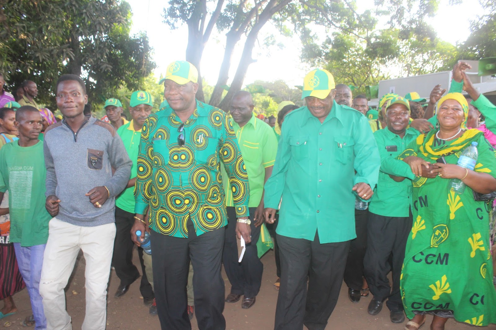 Mbunge wa Jimbo la Korogwe Vijijini (CCM) Stepheni Ngonyani alimaarufu Proffesa Maji Marefu (MNEC) na Mjumbe wa baraza Kuu la wazazi Taifa kushoto akimnada mgombea udiwani kata ya Kwagunda