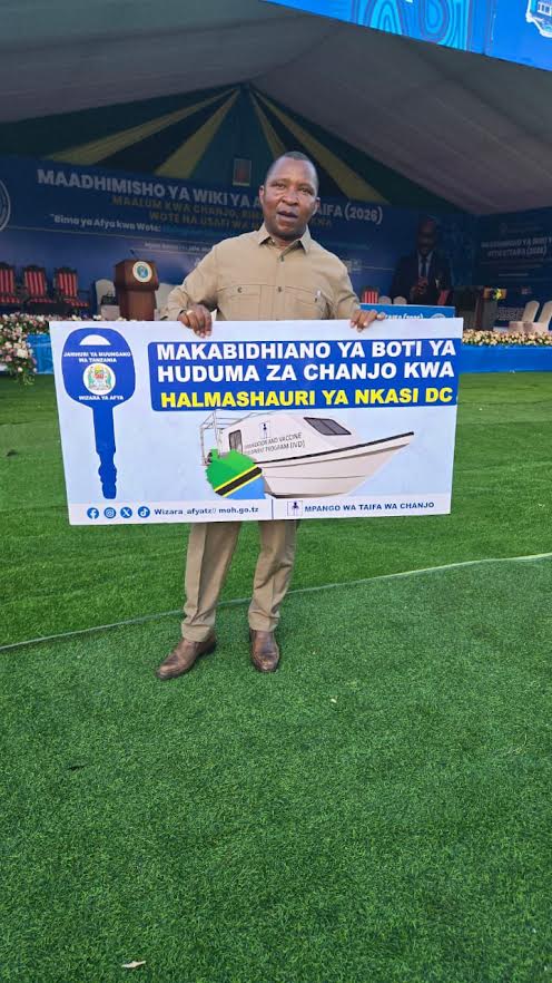 ‎Mkurugenzi Mtendaji wa Halmashauri ya Wilaya ya Nkasi, Afraha Hassan, kwa niaba ya wananchi wa wilaya hiyo, amepokea boti ya huduma za chanjo katika hafla iliyofanyika katika Halmashauri ya Kibiti, Mkoa wa Pwani.