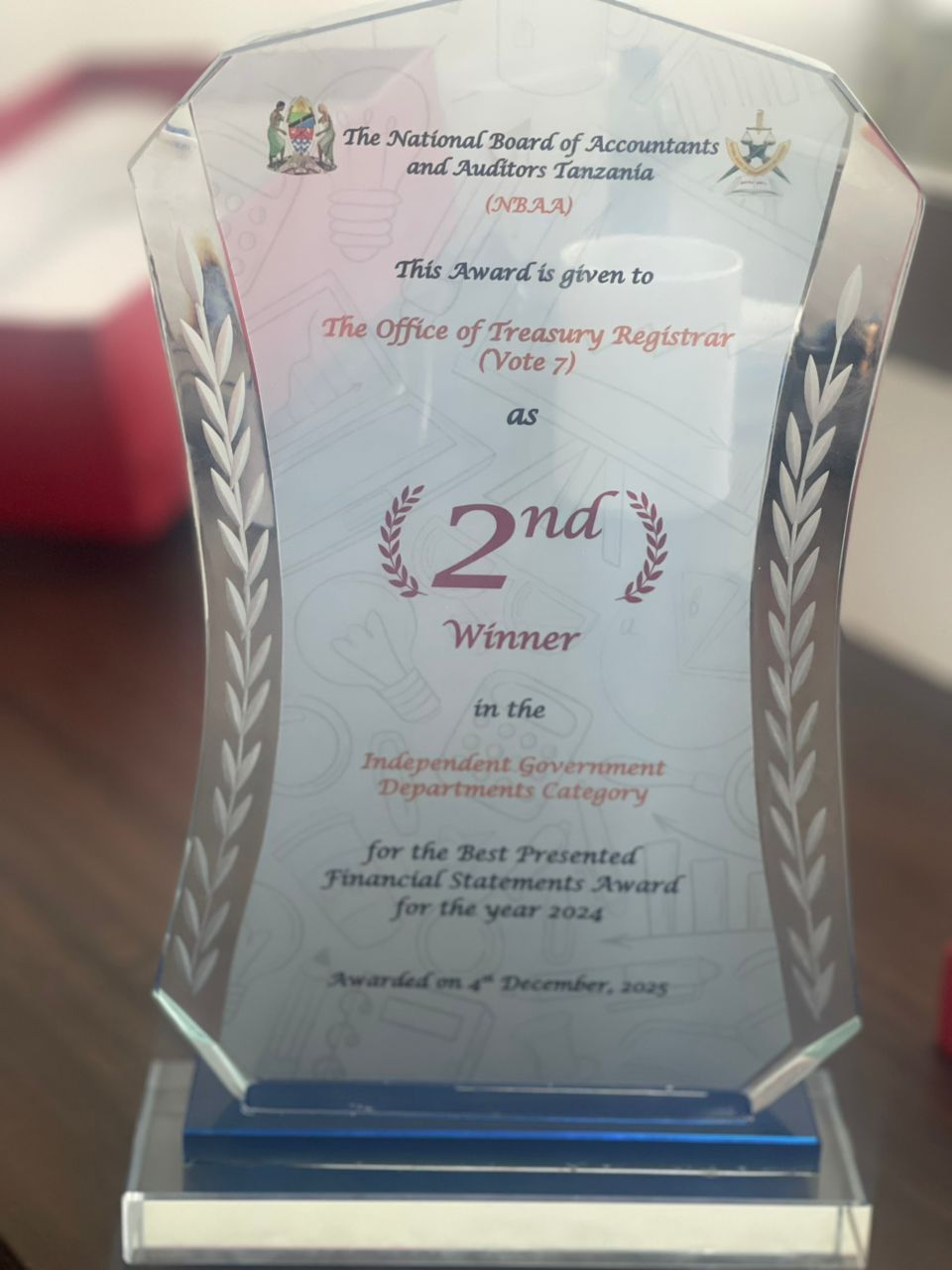 Tuzo hiyo ilikabidhiwa usiku wa Alhamisi, Desemba 4, 2025, jijini Dar es Salaam na Naibu Waziri wa Fedha, Laurent Luswetula, ikiwa ni sehemu ya kutambua taasisi zinazozingatia viwango, weledi na uwazi katika uandaaji wa taarifa za fedha za mwaka.
