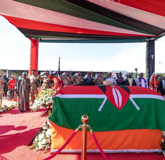 Waziri Mkuu wa zamani Raila Odinga amezikwa nyumbani kwao huko Kang’o ka Jaramogi eneo la Bondo, Kaunti ya Siaya. Mwili wa Raila ulipigiwa mizinga 17 ya risasi kumpatia heshima kulingana na wadhfa aliokuwa nao katika sherehe ya Jeshi la Ulinzi…