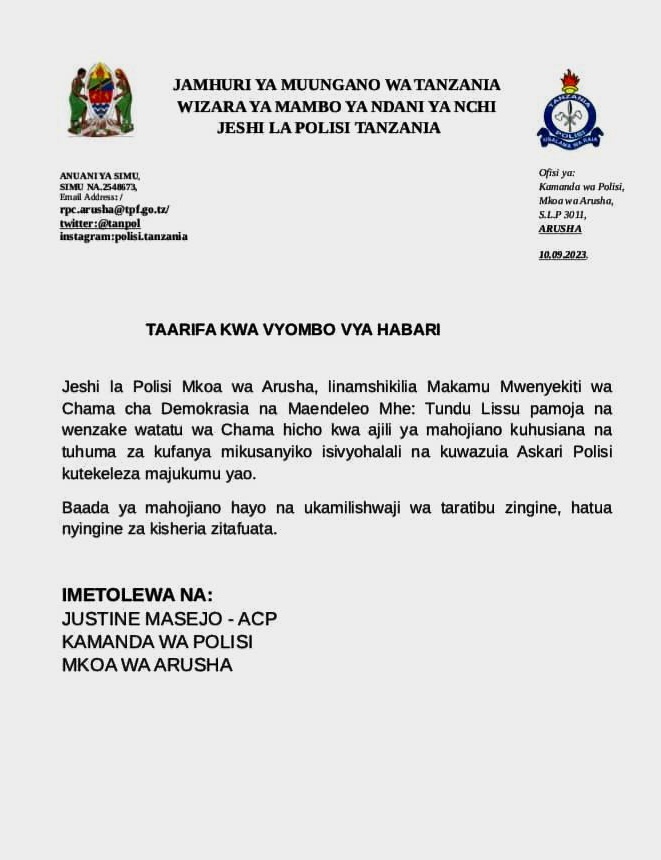 on Polisi wamshikilia Lissu kwa kufanya mikusanyiko isiyohalali