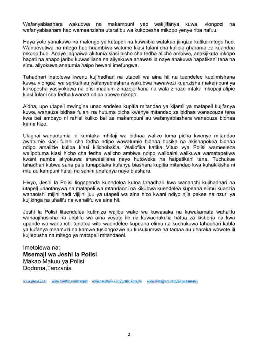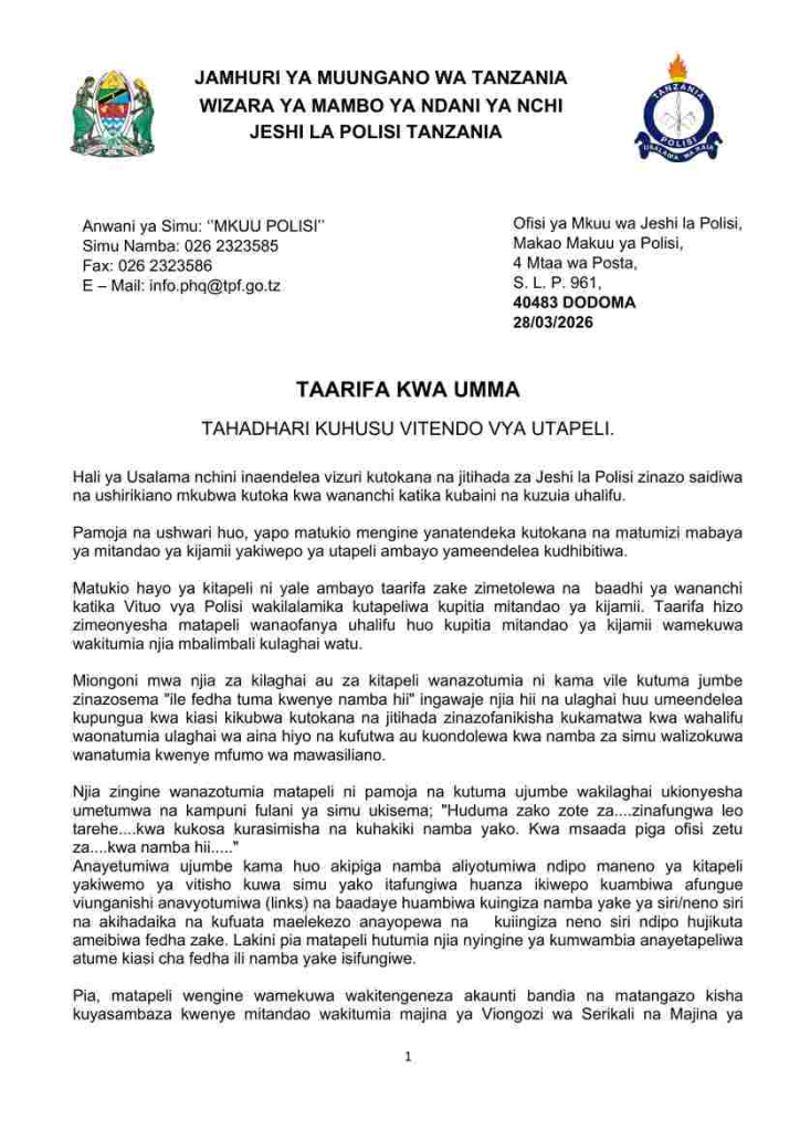 on Polisi watoa tahadhari ya utapeli mtandaoni