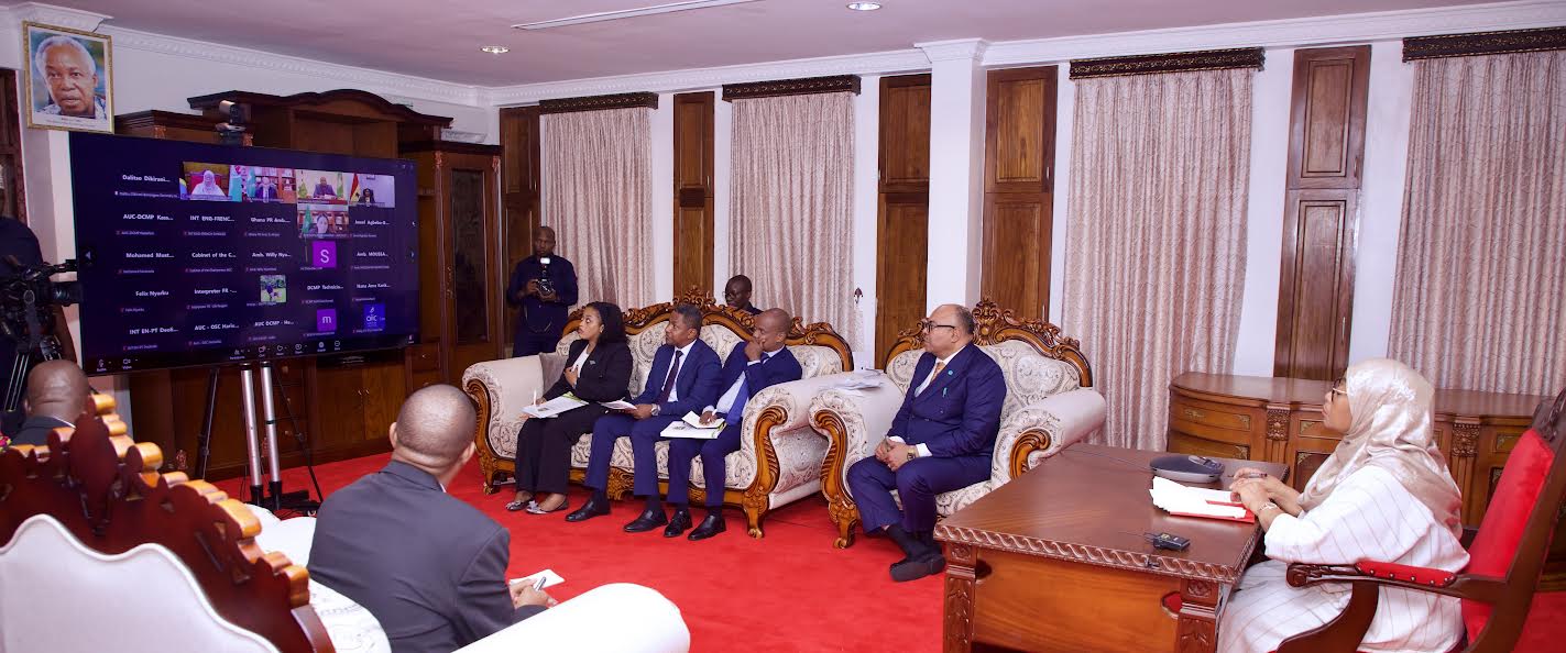 Rais wa Jamhuri ya Muungano wa Tanzania, Mheshimiwa Dkt. Samia Suluhu Hassan, ambaye pia ni Makamu wa Pili wa Mwenyekiti wa Umoja wa Afrika (AU), akishiriki Kikao cha Baraza la Uongozi la Umoja wa Afrika (African Union Bureau of Assembly) kilichofanyika kwa njia ya mtandao, tarehe 26 Machi, 2026, Ikulu Ndogo ya Tunguu, Zanzibar. Kikao hicho kiliongozwa na Mwenyekiti wa Umoja wa Afrika (AU) Rais wa Jamhuri ya Burundi Mhe. Évariste Ndayishimiye.