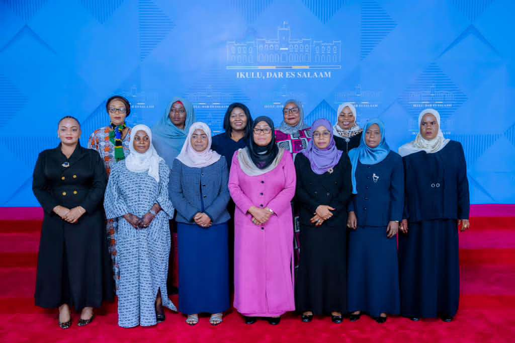 Rais wa Jamhuri ya Muungano wa Tanzania Mhe. Dkt. Samia Suluhu Hassan akiwa kwenye picha na Wagombea wa nafasi ya Urais Wanawake ambao ni Saum Hussein Rashid kutoka chama cha UDP na Mwajuma Noty Mirambo kutoka chama cha UMD walioshiriki Uchaguzi Mkuu uliofanyika mwezi Oktoba, 2025 mara baada ya mazungumzo yao, Ikulu jijini Dar es Salaam tarehe 31 Machi, 2026.